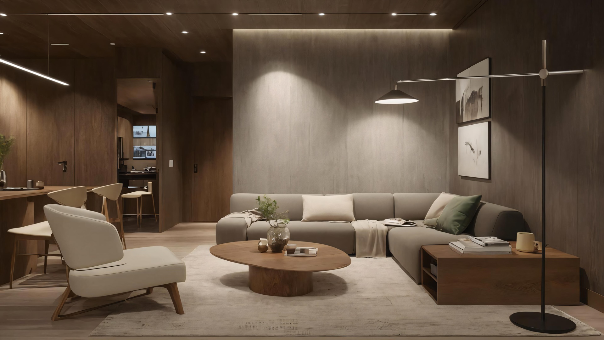 The building utilizes a mix of materials, including concrete, metal,wood and glass. The concrete gives it a solid and durable look, while the glass adds transparency and lightness. The color scheme is primarily neutral, with shades of gray and white dominating the exterior. This palette is typical of modern architecture and helps to maintain a sleek and sophisticated appearance.